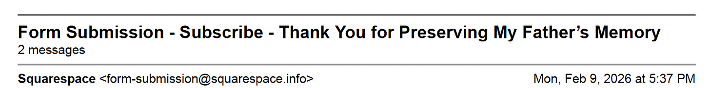 Subject: Thank You for Preserving My Father’s Memory